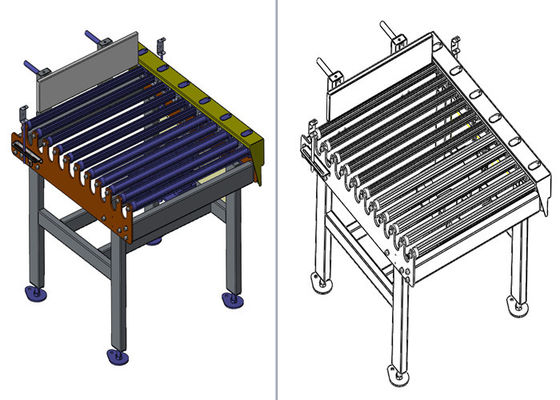 สายพานลำเลียงประกอบด้วยส่วนลูกกลิ้งชุดขับเคลื่อนโซ่ส่วนรองรับเป็นต้นภายใต้มอเตอร์ที่ติดตั้งแบบสลิงเหนือลูกกลิ้งสองตัวผ่านโซ่ลูกกลิ้งทั้งสองนี้จะขับเคลื่อนลูกกลิ้งด้านหน้าและด้านหลังแยกกัน